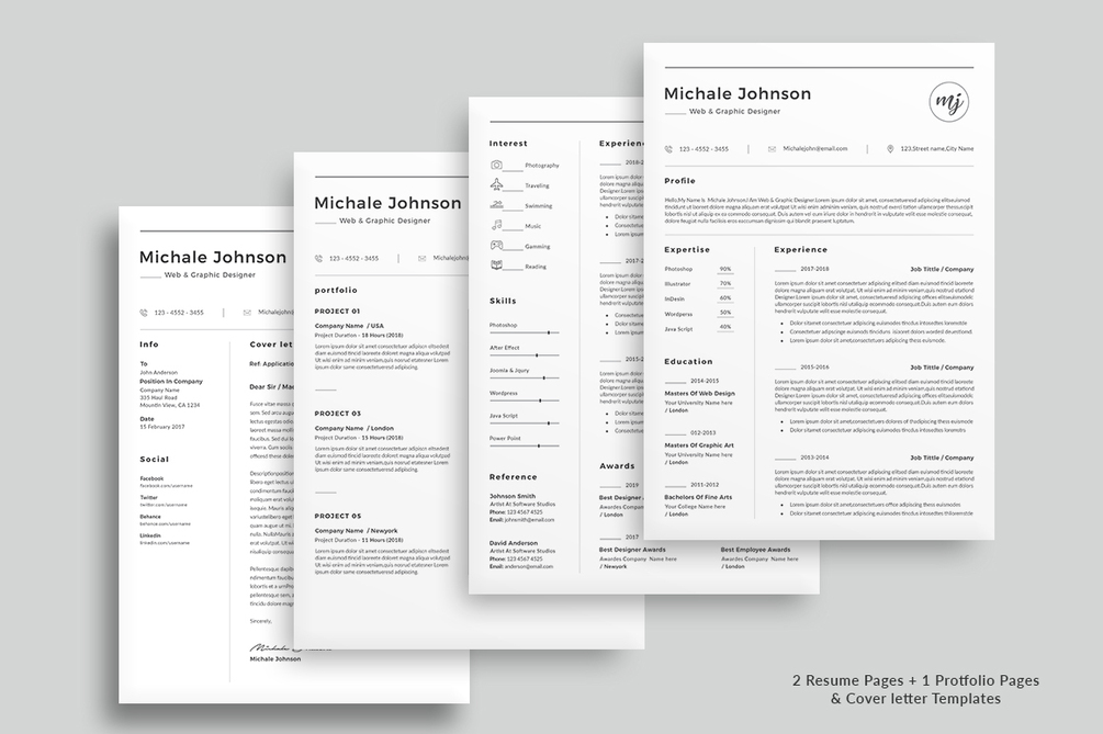 Professional 4 pages resume cv template. This professional Resume Template is made in Adobe Photoshop, Illustrator and MS Word aka Microsoft Word. This clean Resume Template is professionally organized and labelled so every beginner can edit it like a pro.