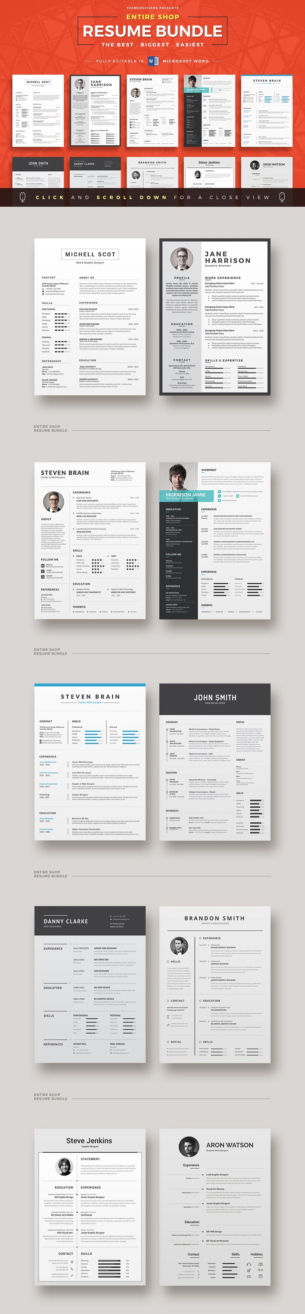 60 Resume Templates with matching Cover Letter Template. 18 Matching Business Cards, Step by step tutorials on customization of these templates. Information file contains the download links for the additional resources that you'll need to use these awesome templates.